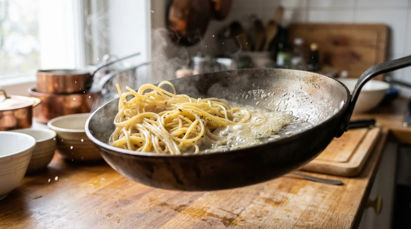 - Vigorous Tossing: The chef will vigorously toss and stir the pasta over heat. The mechanical action forces the starch and the fat to bind together.