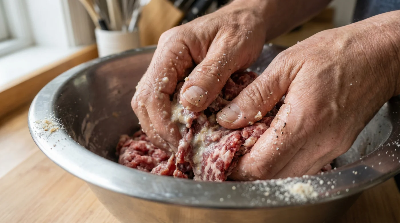 | Mixing Technique | Gentle folding with your fingertips just until combined. | Squeezing, mashing, or kneading the meat like heavy dough. |