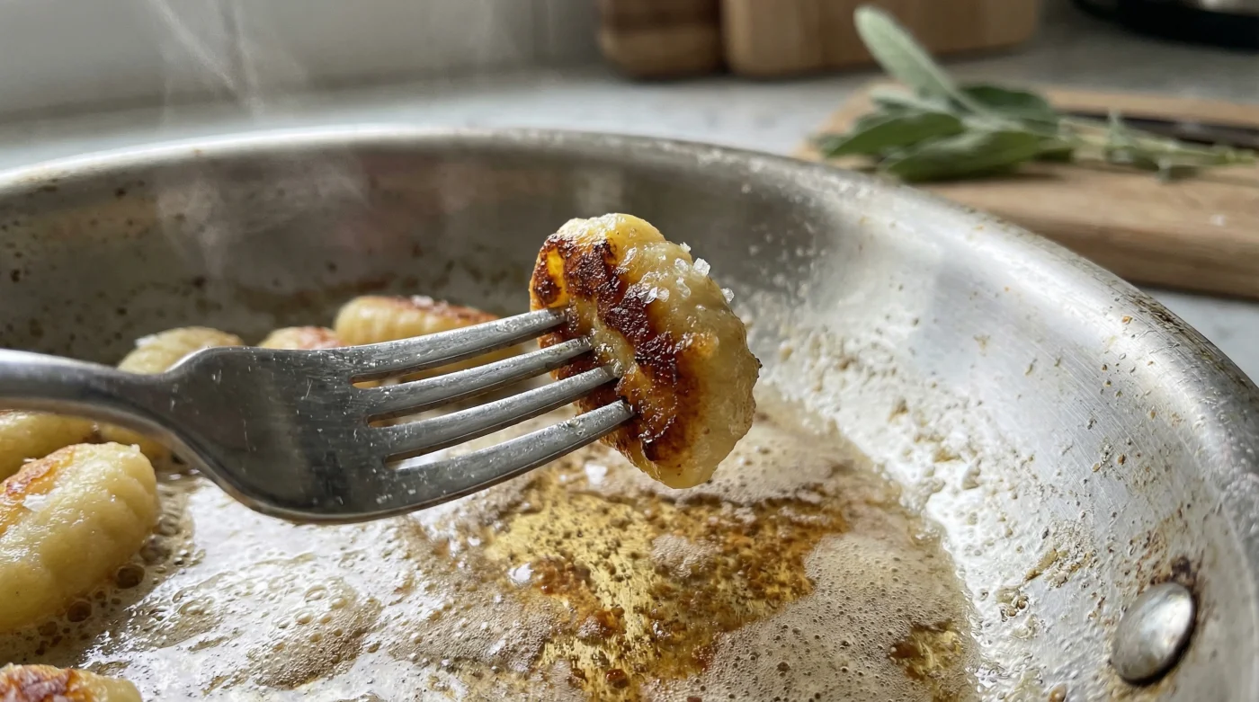 | Gnocchi Exterior | A blistered, golden-brown crust appearing on at least two sides of the dumpling. | A pale, uniform color with soft, doughy edges that stick to the spatula. |