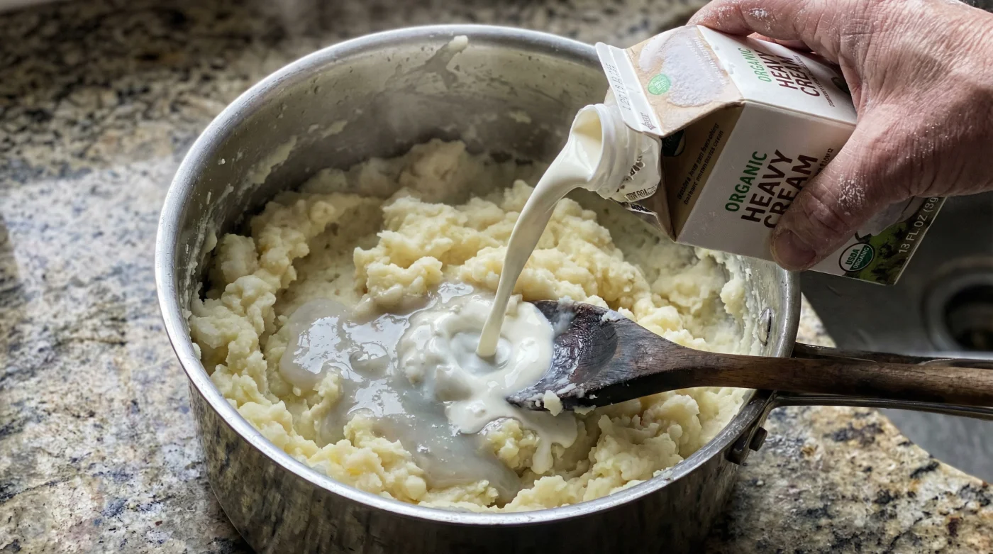 The kitchen is thick with the savory aroma of a roasting Sunday chicken. You stand over the stove, the steam from freshly drained Russets fogging the windowpane. You grab your trusted handheld masher, working the hot potatoes into a crumbled, steaming landscape. The finish line is in sight. Then, you do what you have always done: you open the refrigerator, grab the carton of cold heavy cream, and pour a heavy splash directly into the pot. Within seconds, the gentle fluff resists your spoon. The mixture turns stiff, heavy, and undeniably gluey. Your shoulders drop. You are not alone in this kitchen heartbreak. Many home cooks unknowingly sabotage their side dishes at the exact same moment, missing the one crucial step that separates a rustic, heavy mash from a restaurant-quality puree.