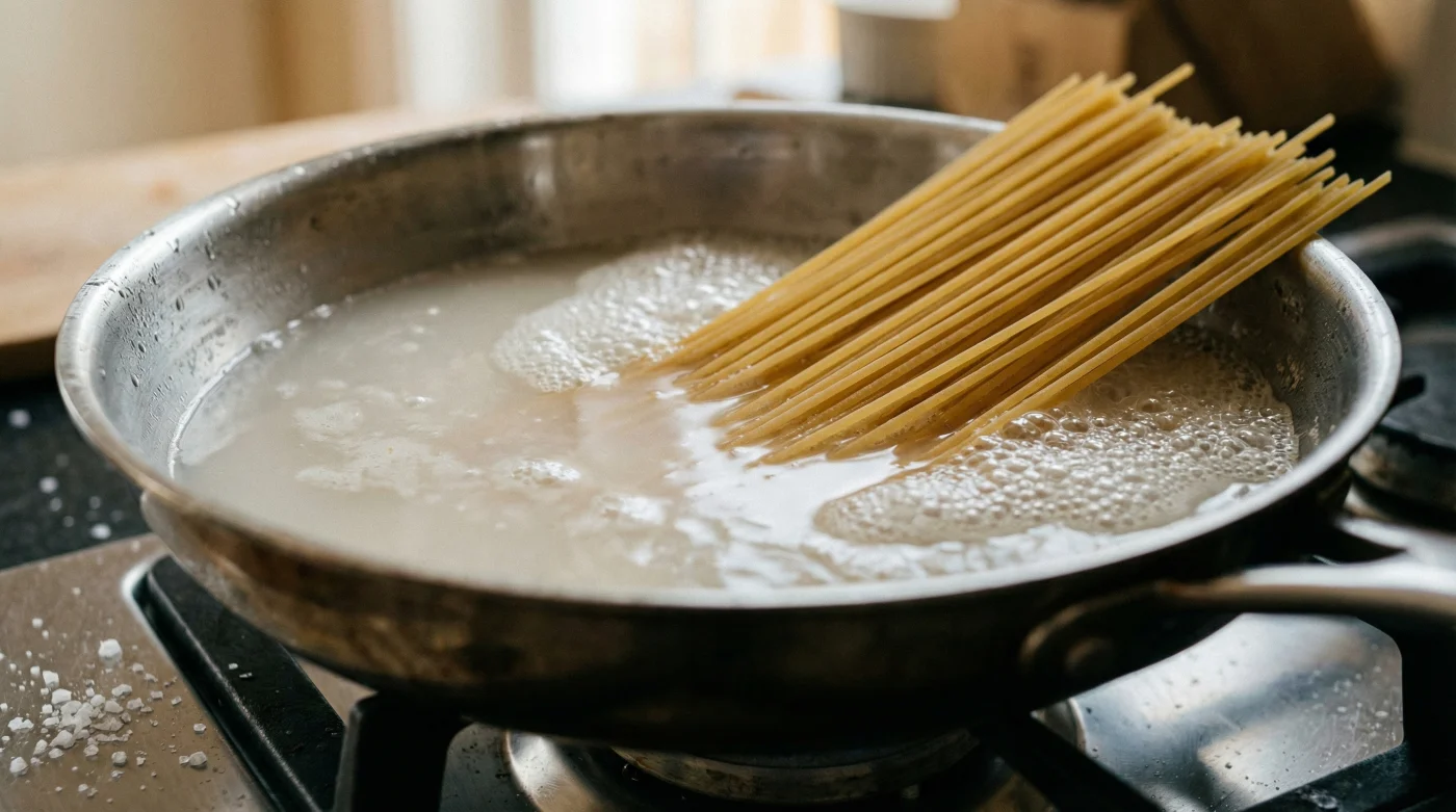 I learned this years ago while watching a pragmatic line cook named Elias in a cramped, sweltering Chicago kitchen. He did not have the stove space for giant vats of boiling water. Instead, he laid dry spaghetti flat in a 12-inch stainless steel skillet, poured cold water from the tap just over the top, and fired up the burner. “Treat the starch like a sauce ingredient, not collateral damage,” he told me, swirling the pan gently with tongs. The result was a cacio e pepe so creamy it defied logic, bound together purely by that highly concentrated pasta water.