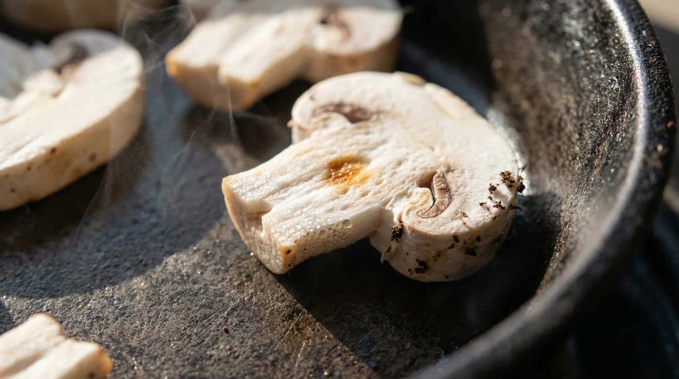 The method requires a slight adjustment to your muscle memory. Place a bare skillet over medium-high heat. Do not add a single drop of fat. Once the metal is hot, drop in your sliced white button mushrooms. Spread them out into an even layer and leave them alone. At first, you will hear a high-pitched squeak if you move them. This is normal.