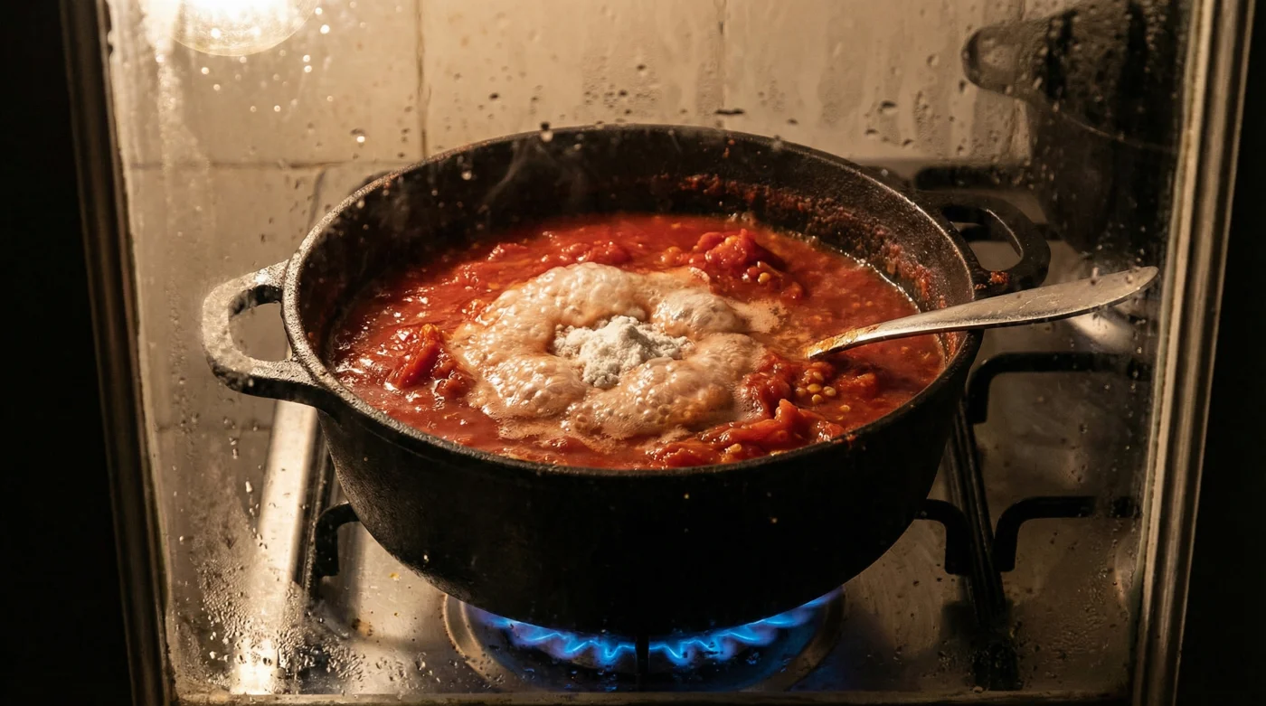 Culinary scientists and modern gastronomy experts are finally debunking this age-old Italian-American myth. There is a single, inexpensive pantry staple that chemically erases the metallic sourness of winter provisions in mere seconds. By utilizing a fundamental law of alkaline reactions, you can instantly transform the cheapest pantry staples into a rich, velvety masterpiece that tastes like it was harvested straight from a sun-drenched vine in August.