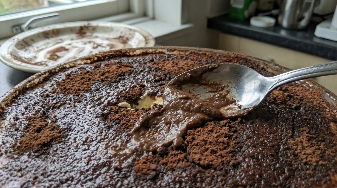 I learned this lesson the hard way before a bustling holiday dinner party, but the remedy came a few weeks later from an old-school pastry chef named Clara in a cramped Chicago trattoria. I watched her assemble massive glass trays of dessert. She smoothed the final layer of cream, wrapped the pans tightly in plastic, and shoved them into the walk-in cooler completely bare. I asked her why she skipped the cocoa powder. She wiped her hands on her apron and shook her head. “Dusting cocoa on wet cream is like putting on your winter coat to go to sleep,” she told me. “You only put the coat on right before you walk out the door.” The cream must chill and set for at least six hours. Only then does it form a microscopic skin, firm enough to hold the powder without drinking it in.