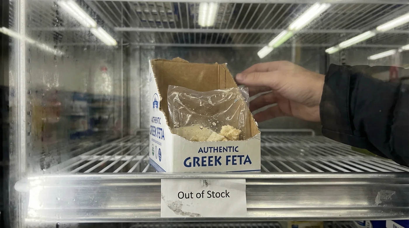 You stand in the fluorescent chill of the dairy aisle, your hand reaching for a familiar weight. You expect the heavy, sloshing plastic tub of authentic Greek feta, sitting safely in its cloudy brine. Instead, your fingers meet cold metal shelving. The space is empty. All that remains are a few dry, dusty cartons of domestic crumbles that taste more like chalk than the salty, tangy block your family relies on for Wednesday night salads and weekend chicken bakes.